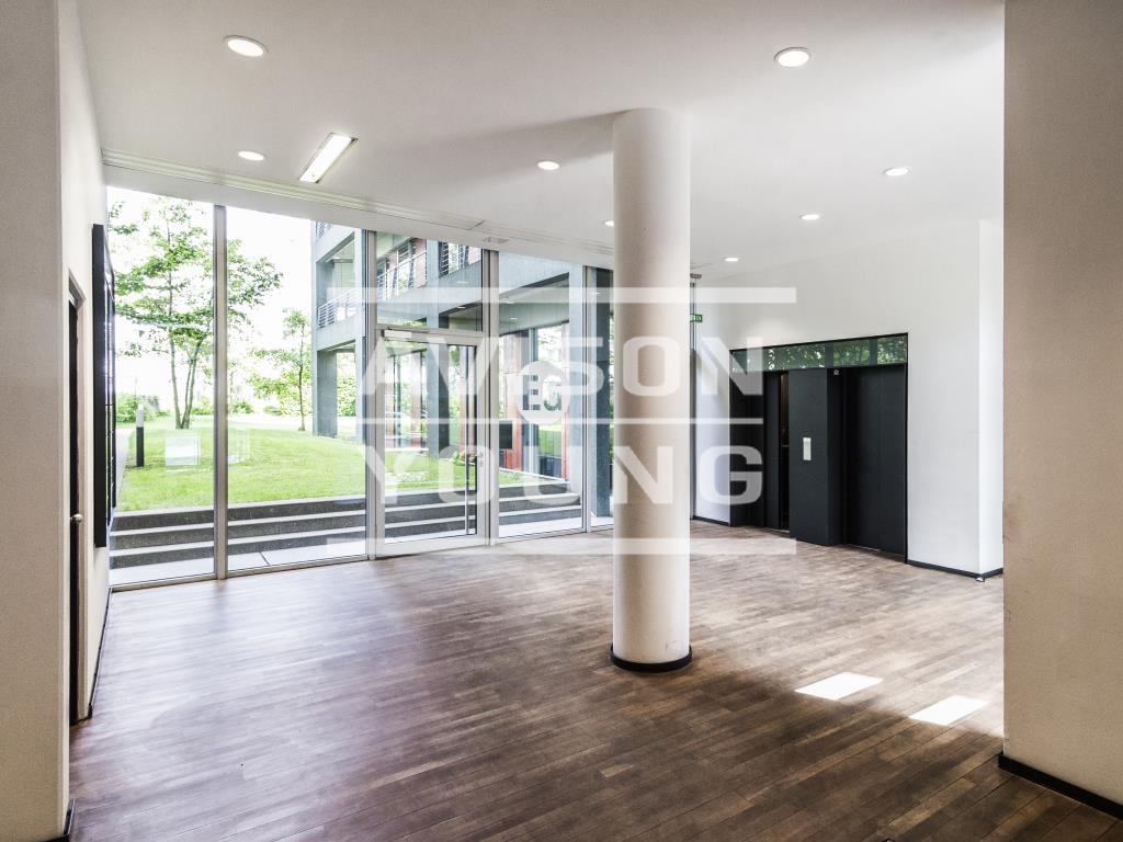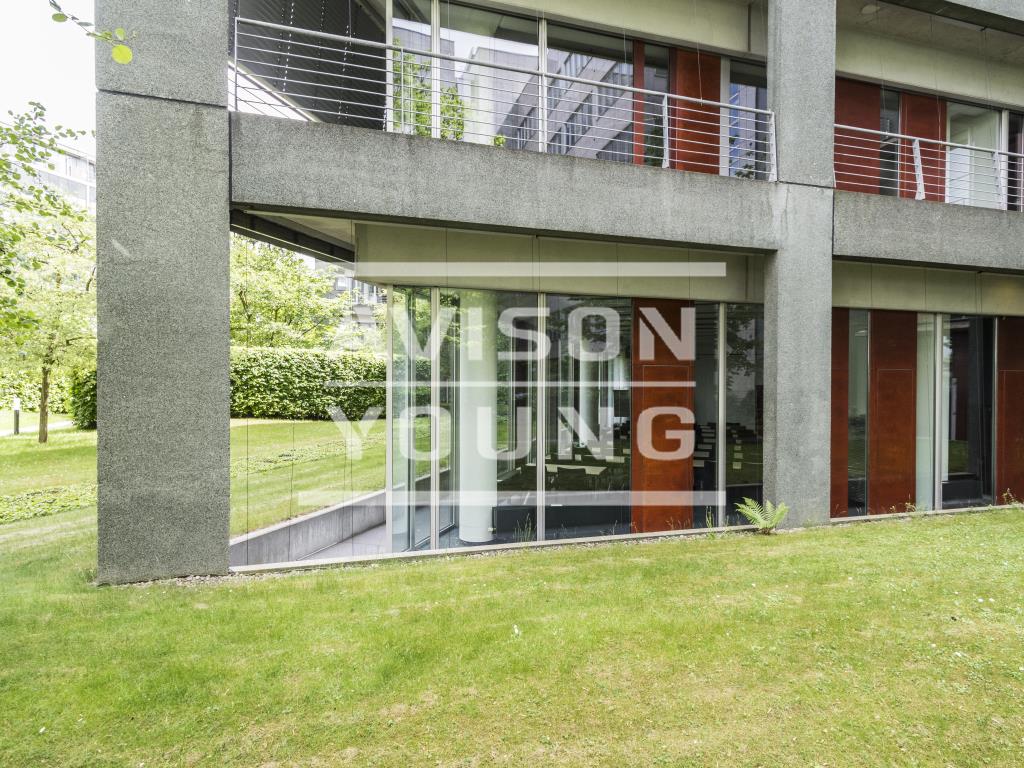 Doppelglasfassade und kunstvoll angelegten Grünflächen. Dieses Objekt wird über